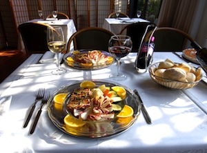 Om het geplande etentje doorgang te kunnen laten vinden heb ik me de hele dag rustig gehouden. Sinds mijn bezoek aan de huisarts afgelopen donderdag voel ik me nog alles behalve lekker, maar met de toegestopte medicijnen is het uit te houden. Al snel staan de gerechten op tafel en we laten het ons smaken. Na een wat gezapige dag kan ik hier erg van genieten.